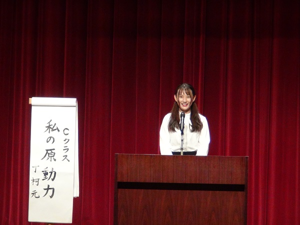 今年度、最優秀賞に選ばれたのは、DING KE YUAN(丁柯元さん)の「私の原動力」についてのスピーチでした。