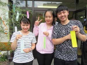 学生たちは、覚えた日本語や漢字を一生懸命使いながら、「日本語が上手になりますように」「家族が健康でいられますように」など、それぞれ自分の願いを込めて短冊を書いていました。