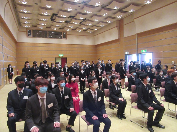 コロナウイルスの影響で、なかなか日本に入国できなかった新入生にとっては、待ちに待った入学式となり、期待と緊張でみんな真剣に参加していました。