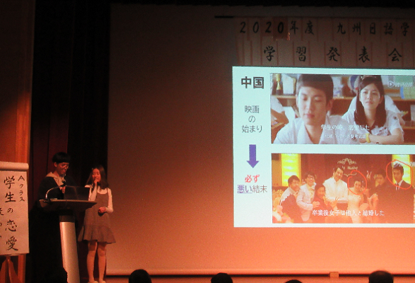 今年度の最優秀賞は「どうして日本の学生は恋愛してもいいの?」というテーマで発表した中国人チームでした。中国では学生の恋愛はよくないという考え方が一般的なんだそうです。他にも、ヘビ毒の意外な効果をプレゼンしたチームなど、合わせて5チームが入賞しました。どの発表も内容の面白さだけではなく、よく練習した成果が表れていました。