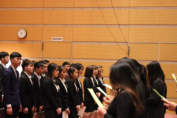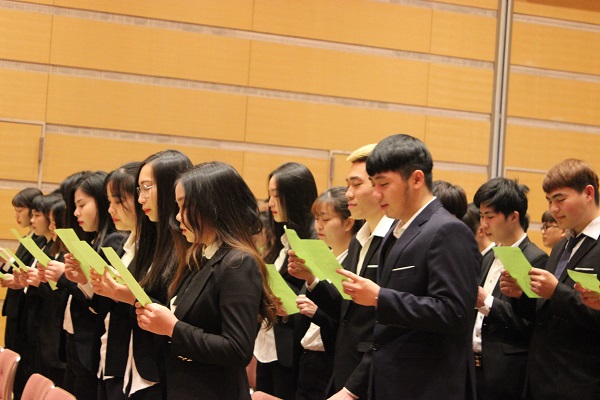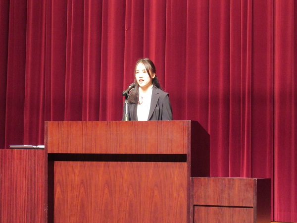 また、新入生代表挨拶では張雨荟さんが、留学の意気込みを話してくれました。