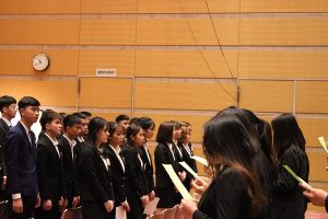新入生たちは入国したばかりで緊張した面持ちでしたが、先輩たちから歓迎の歌をプレゼントされ、緊張も和らいでいました。