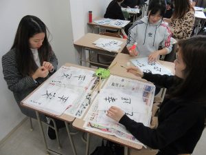 新しい年を迎え、学生たちは書き初めやかるたなどの日本のお正月を体験しました。