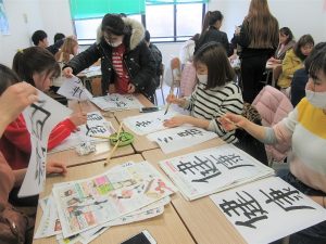書き初めでは、それぞれの新年の抱負を漢字で表現。慣れない毛筆に戸惑いながらも、何度も書き直して渾身の一枚を書きあげました。