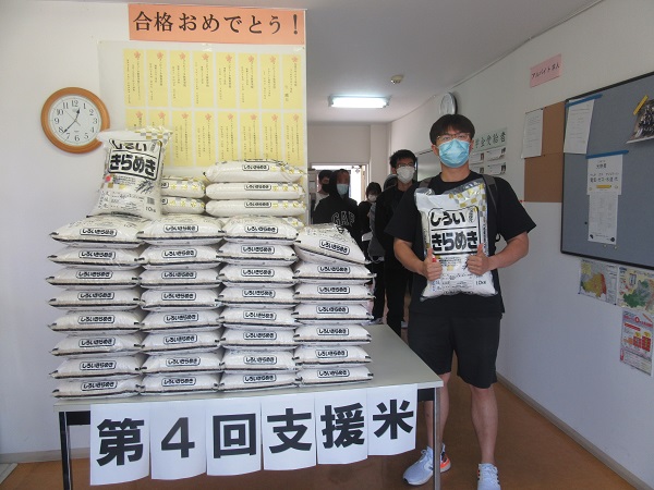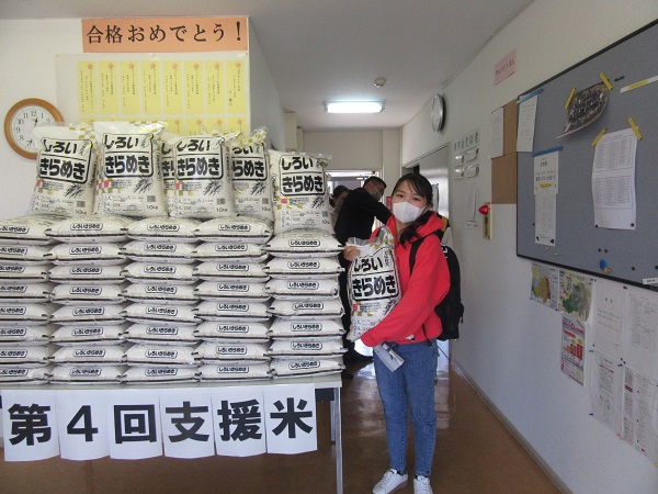 授業初日、「コロナウイルスに負けず、留学生活を頑張って欲しい」という気持ちで、新入生にも支援米を支給いたしました。