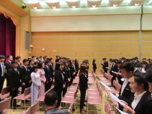 在校生から歌のプレゼントが送られ、新入生も一生懸命聞き入っていました。